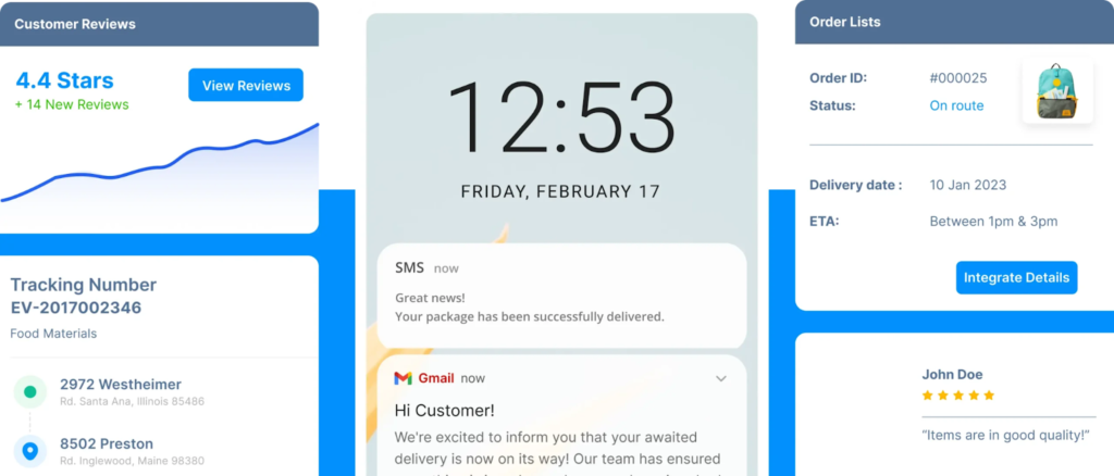 • Customer Communication: Enable automated alerts via email, SMS, or mobile apps.